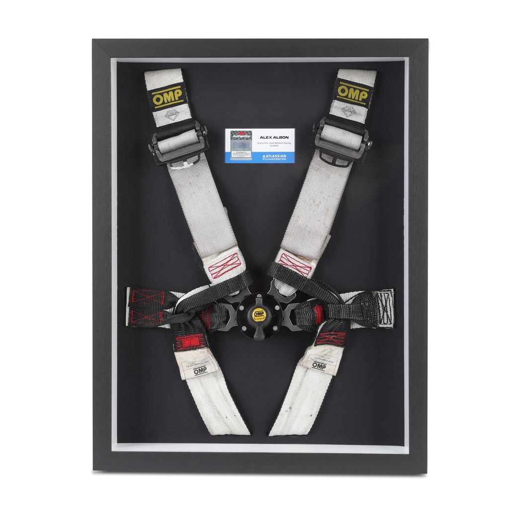 A unique piece of memorabilia, this seatbelt was once used by Williams Racing driver, Alex Albon, during his seasons with the team. Used during a Grand Prix weekend to secure him firmly to his seat when pushing the limits, it was an integral piece of the car setup.