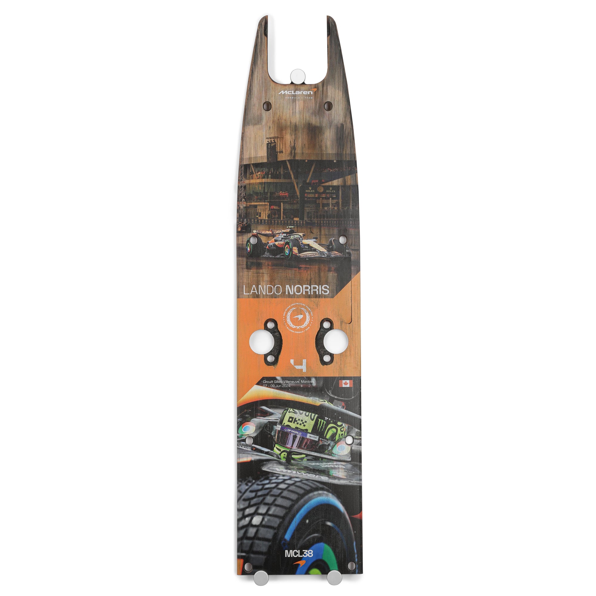 This plank once ran on the underneath of Lando Norris’ MCL38, driven during the weekend of the ninth-round of the 2024 season. Lando Norris drove to a podium finish at the Circuit Gilles Villeneuve, clinching a second-place finish from third on the grid.