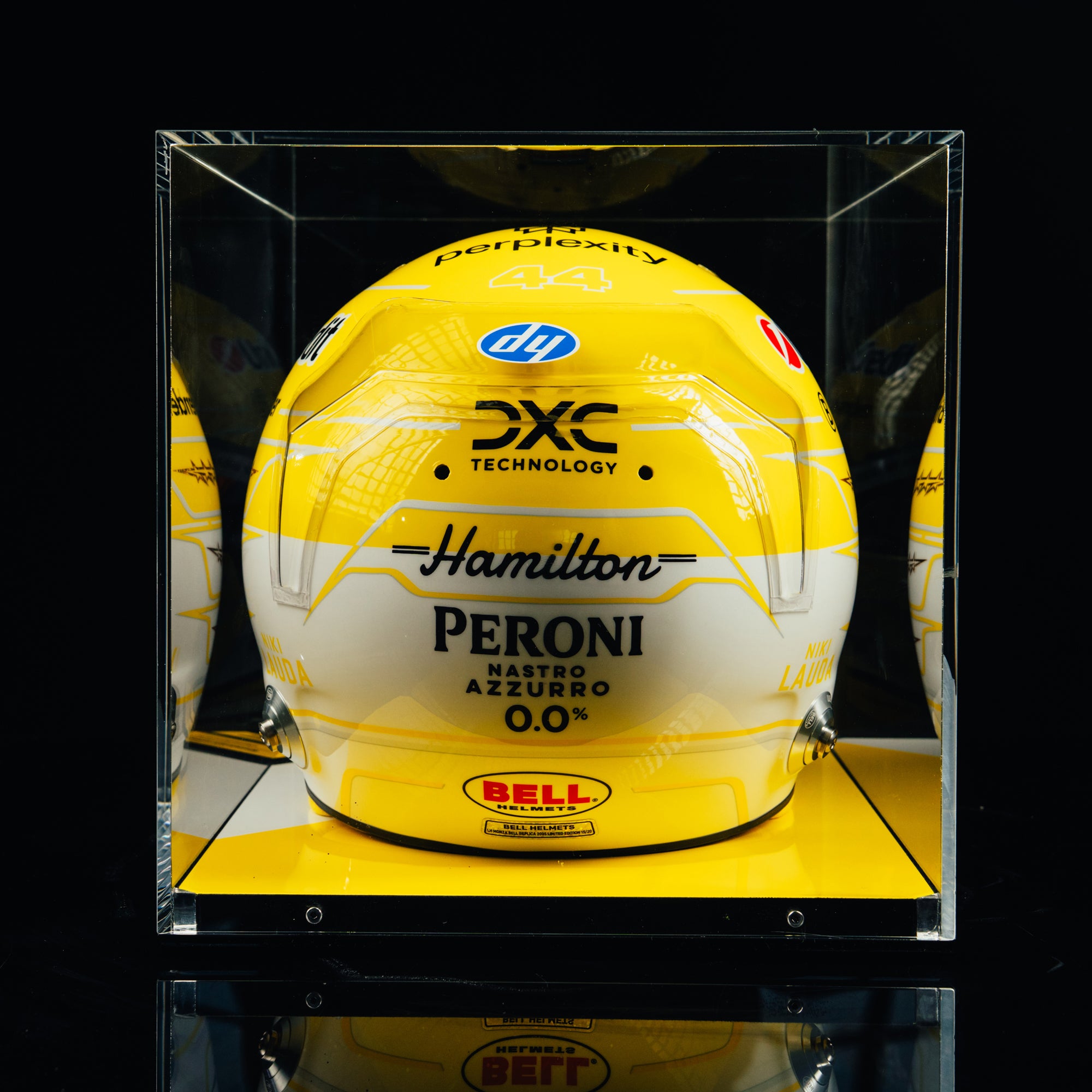 • Full-size 1:1 Bell replica helmet styled after Hamilton’s 2025 Italian Grand Prix design