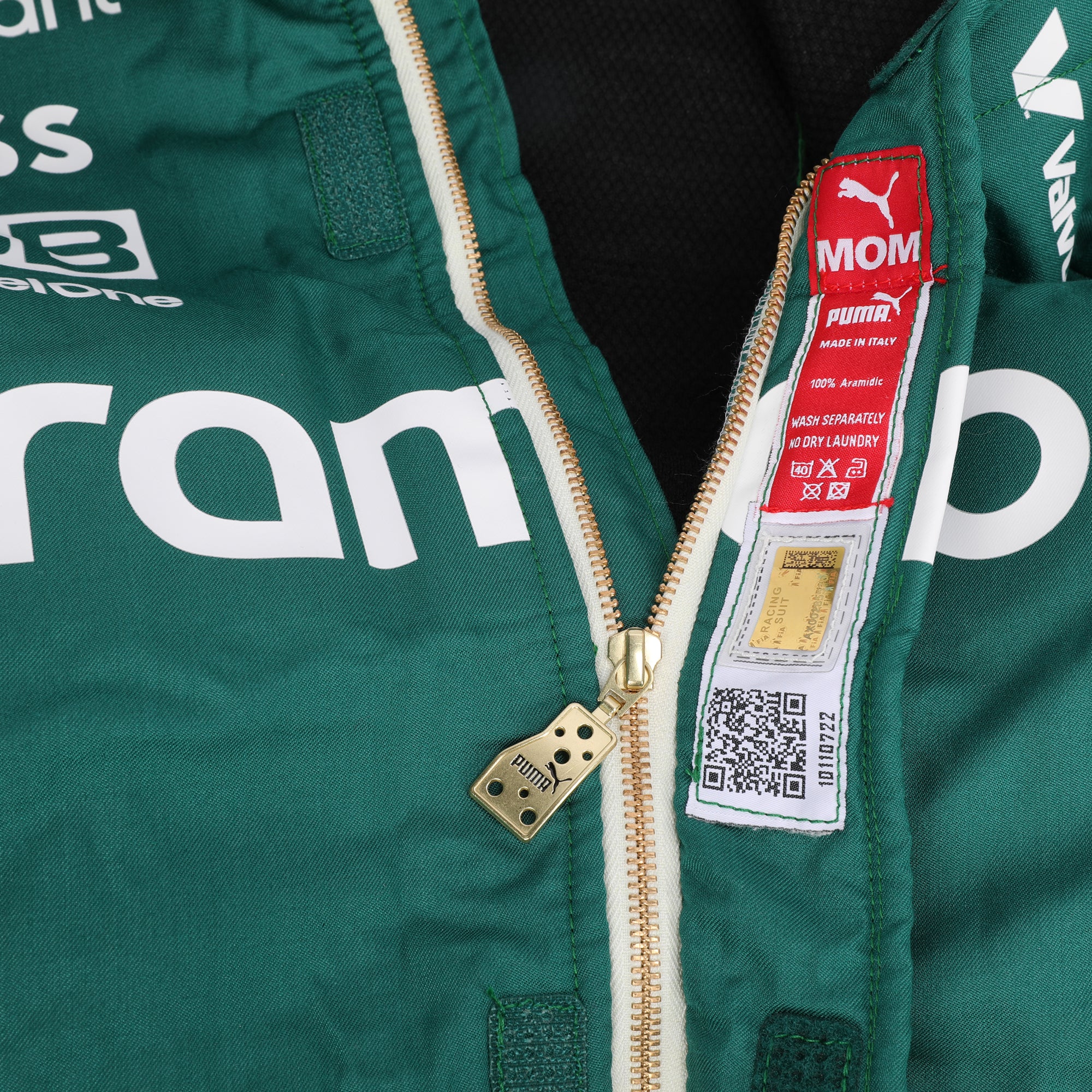 This official race suit reflects the cutting-edge performance, safety, and craftsmanship demanded at the pinnacle of motorsport. Manufactured to FIA safety standards, it features Aston Martin’s distinctive 2025 team livery, complete with Aston Martin Aramco Formula One® Team branding, partner logos, and season-specific detailing. Every element of the suit showcases the precision engineering and premium materials required for elite-level competition.