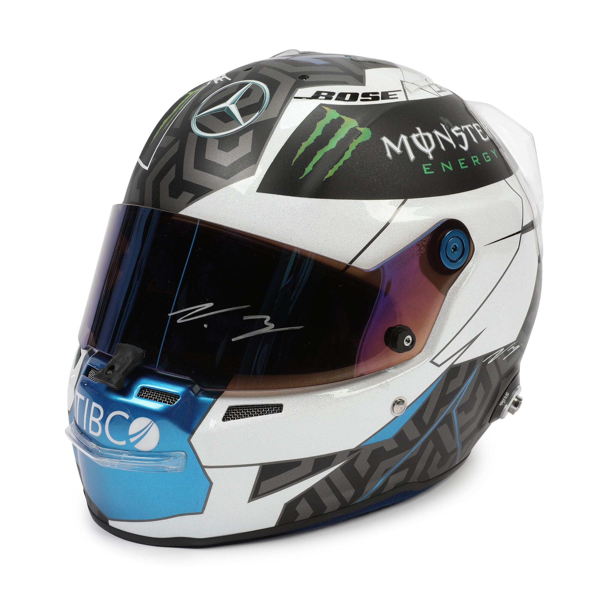 A full-scale replica of Bottas’ striking 2019 helmet design, faithfully reproduced and personally hand-signed by the Finnish Grand Prix winner. A centrepiece item celebrating one of the most dominant eras in modern Formula One.