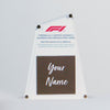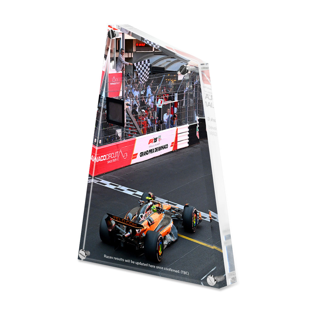 - We hand cut each square and present in new acrylic design, along with a photograph specific to race it was waved at taken by a professional F1 photographer