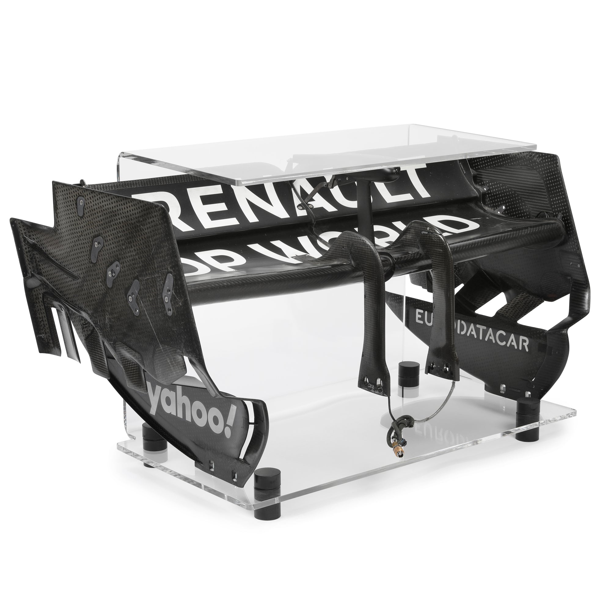 This striking piece of functional motorsport art showcases the distinctive aero form and endplate styling associated with the RS17 era, complete with Renault F1 Team branding and livery-inspired detailing. Topped with a sleek surface ideal for practical use, it transforms a race-bred design into a bold and usable centrepiece.