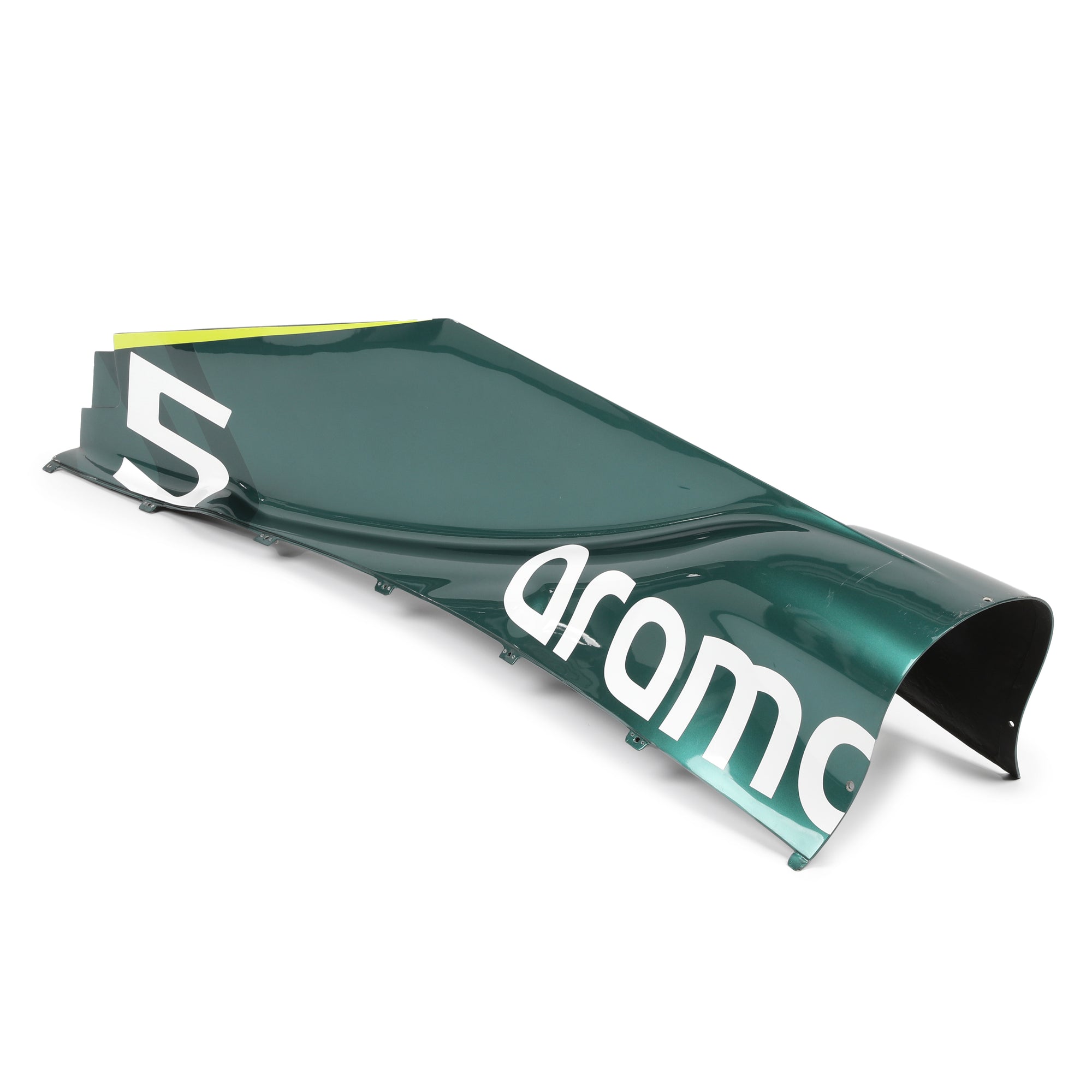 Created as a high-quality replica for display, this engine cover pays tribute to Sebastian Vettel’s time with Aston Martin and his enduring impact on Formula 1.
