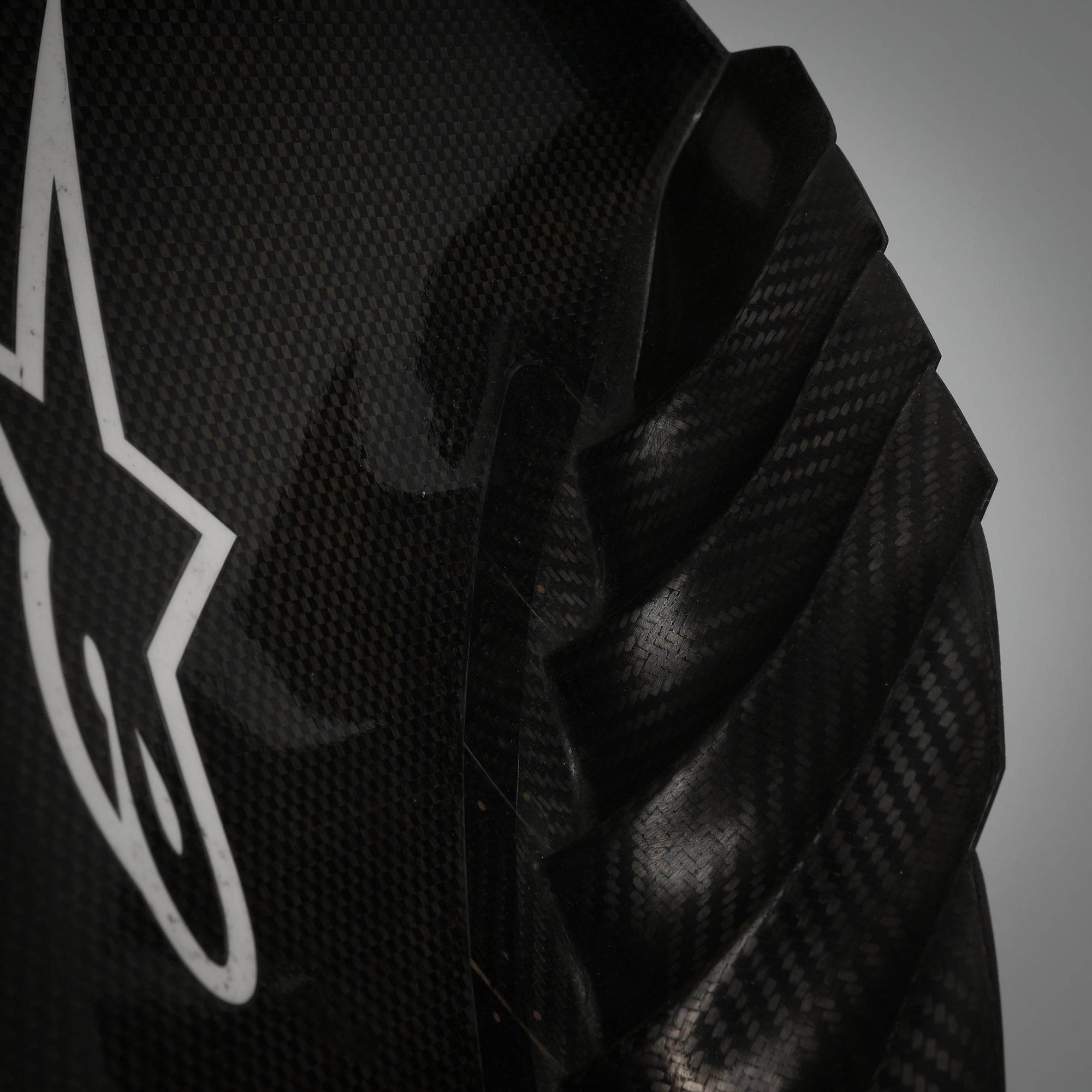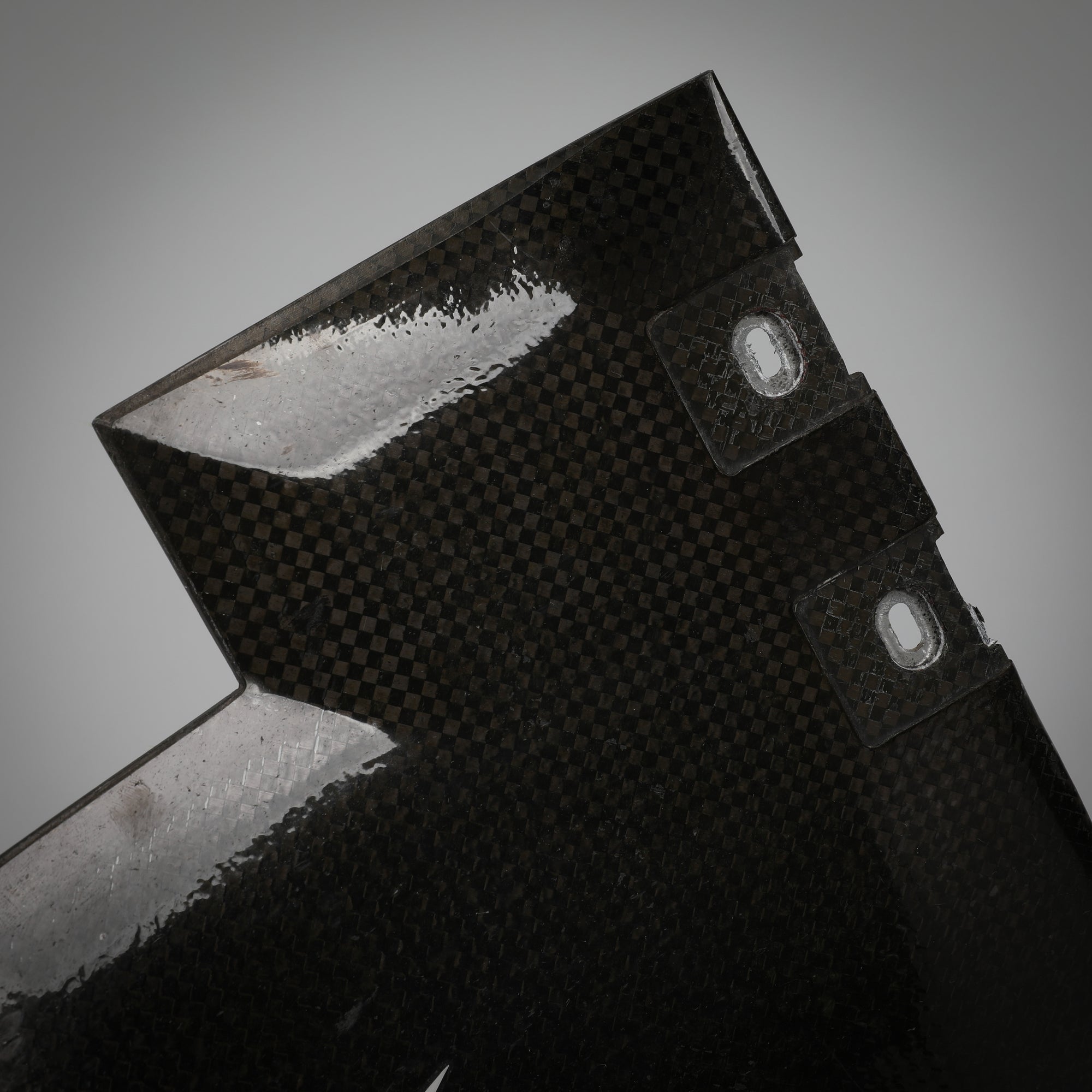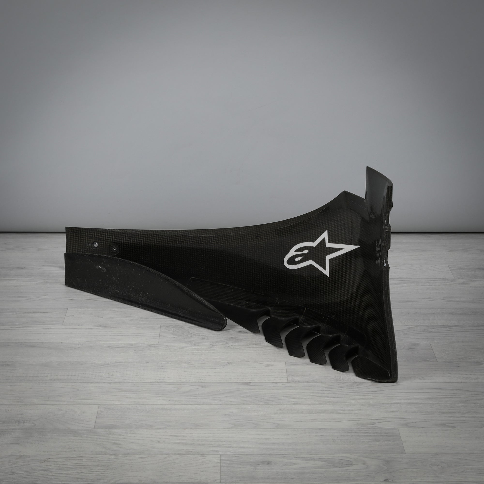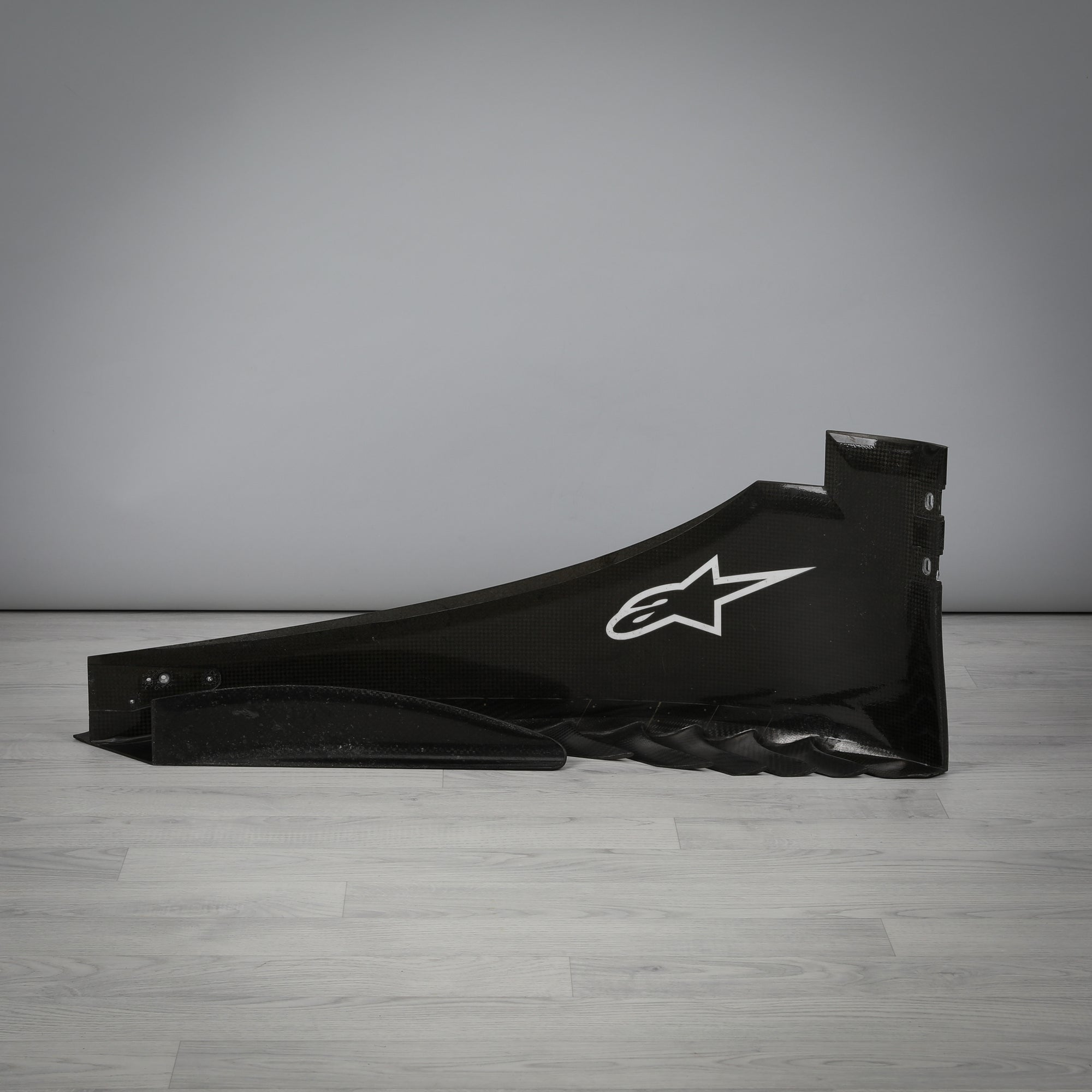 Positioned on the side of the chassis, bargeboards play a critical role in controlling airflow and managing aerodynamic performance. This race-used component showcases the complex shapes and carbon fibre craftsmanship that define F1’s technical evolution.