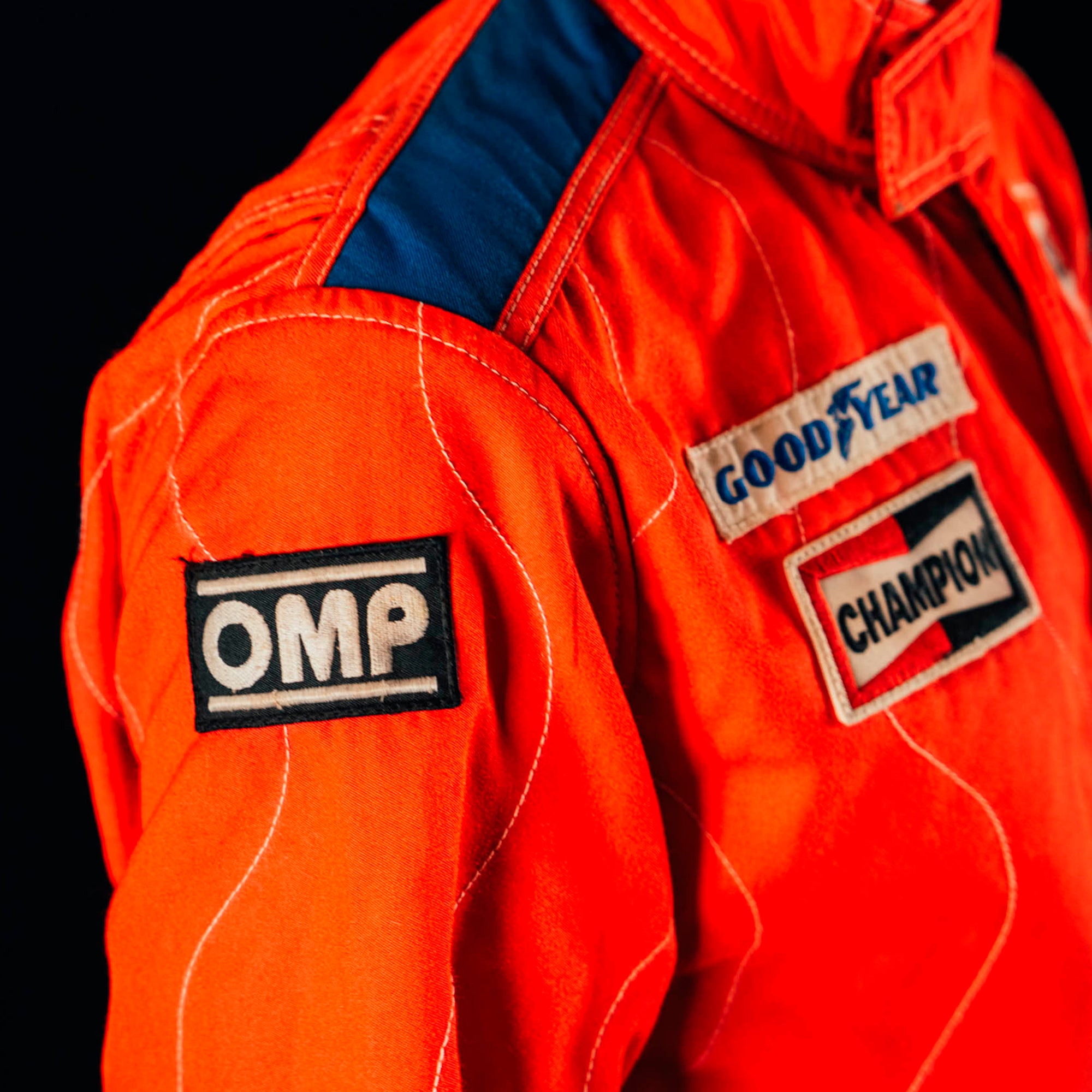 Expertly tailored and emblazoned with accurate team and sponsor logos, the suit reflects the unmistakable design aesthetic of mid-1970s Formula 1—complete with the McLaren team colours and details associated with Mass’s tenure alongside James Hunt.
