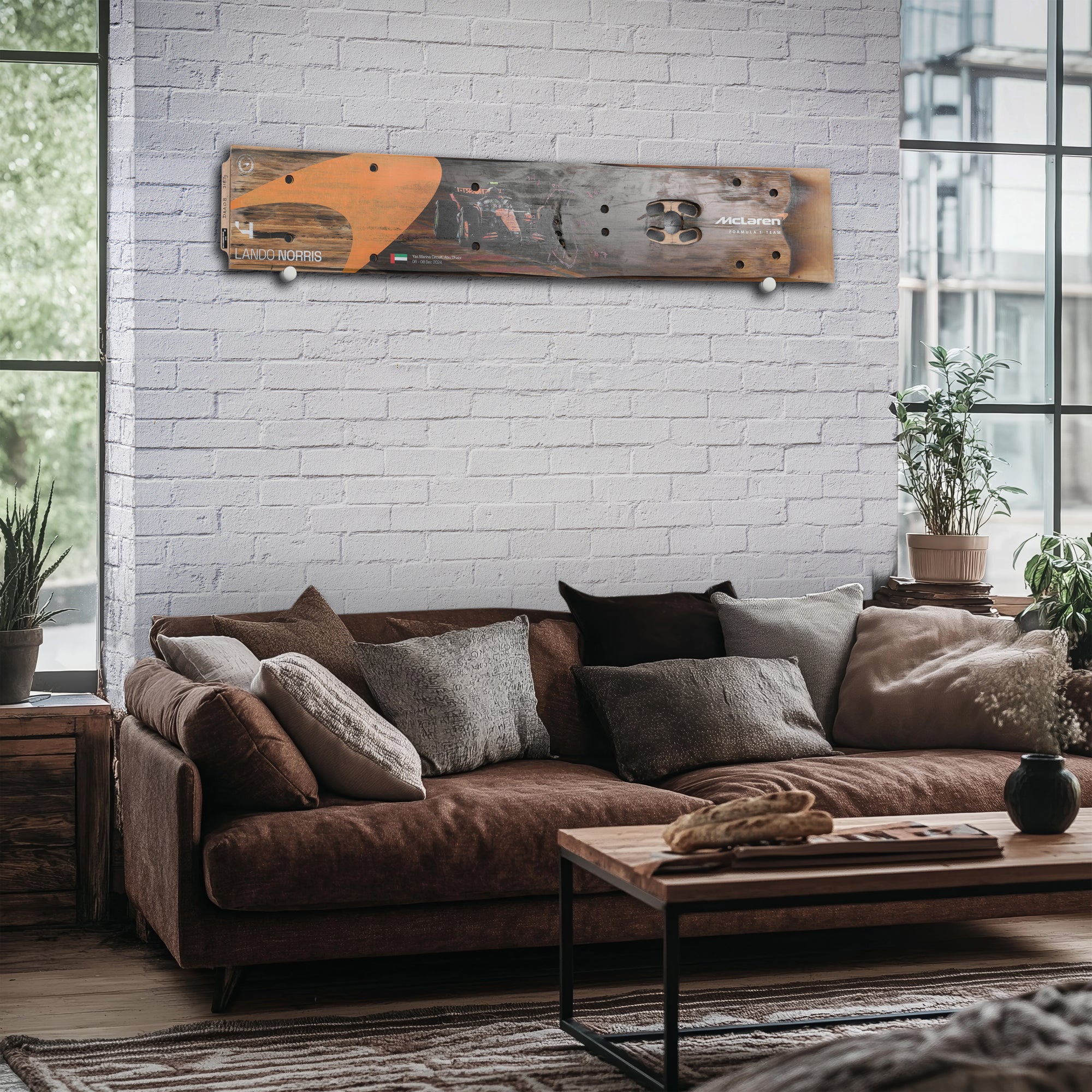 Own an authentic piece of Lando Norris’ 2024 F1® season with this unique piece of wall art, crafted using a race used skid block plank used at the season finale, the 2024 Abu Dhabi Grand Prix.