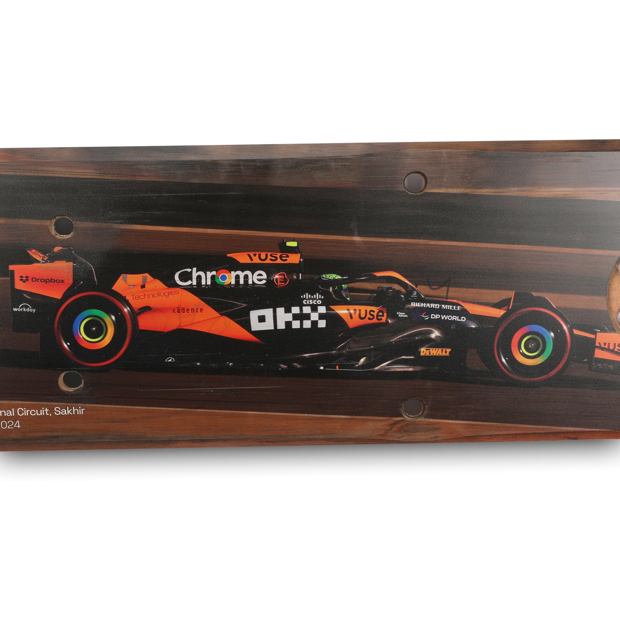 This plank once ran on the underneath of Lando Norris’ MCL38, driven during the first round of the 2024 season – the Bahrain Grand Prix. Lando Norris drove to sixth place at Bahrain International Circuit kick starting his 2024 campaign.