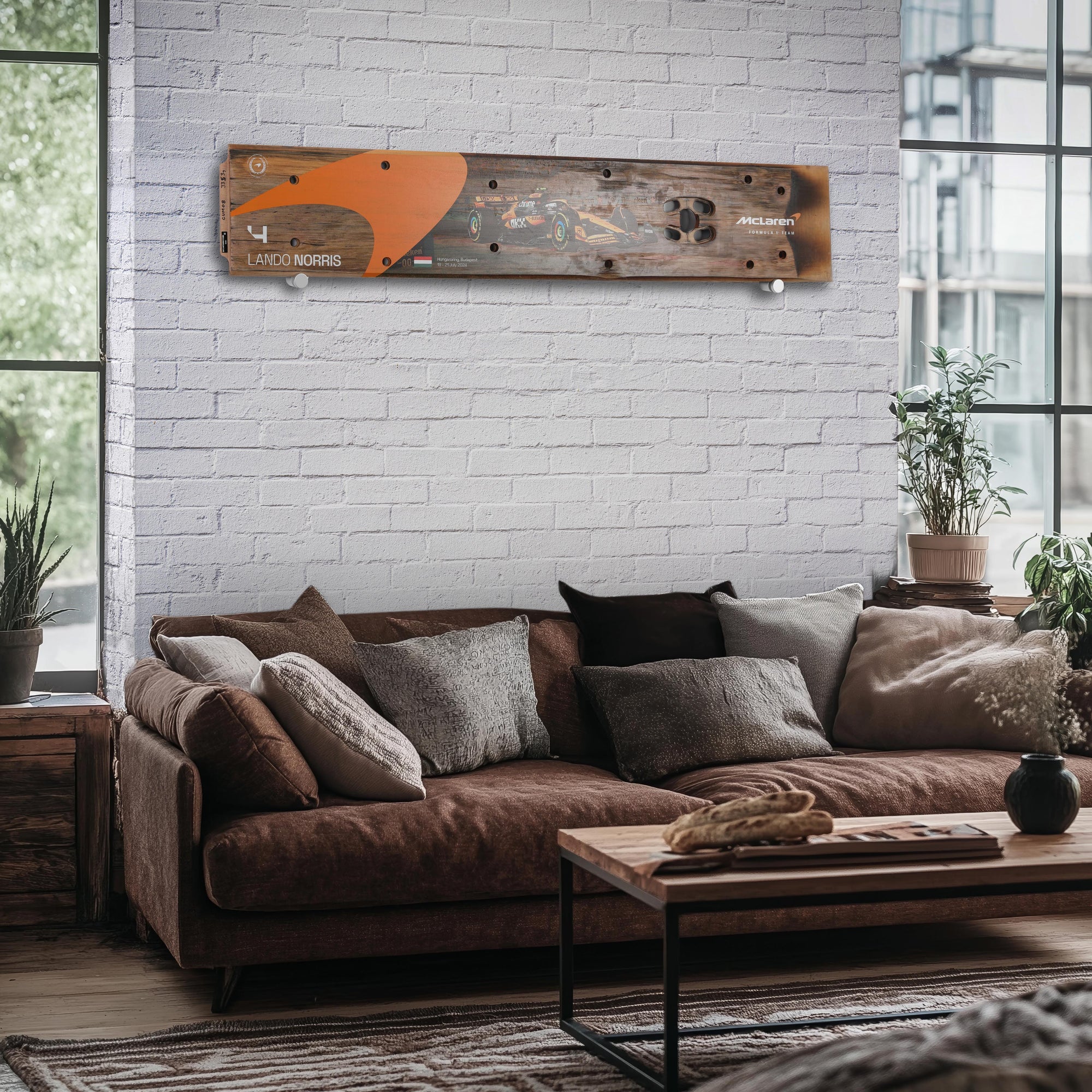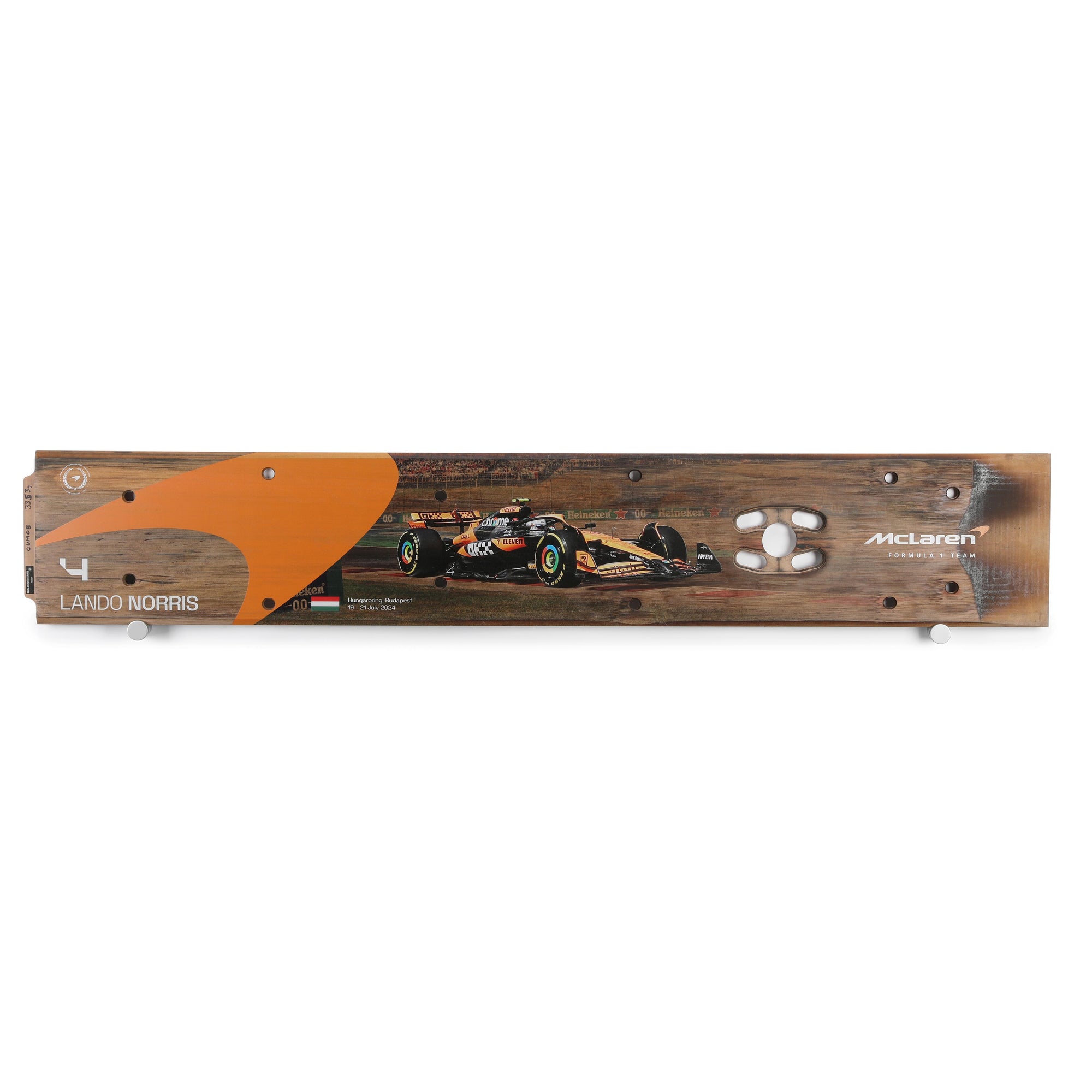 Own an authentic piece of Lando Norris’ 2024 F1® season with this unique piece of wall art, crafted using a race used skid block plank used at the 2024 Hungarian Grand Prix.