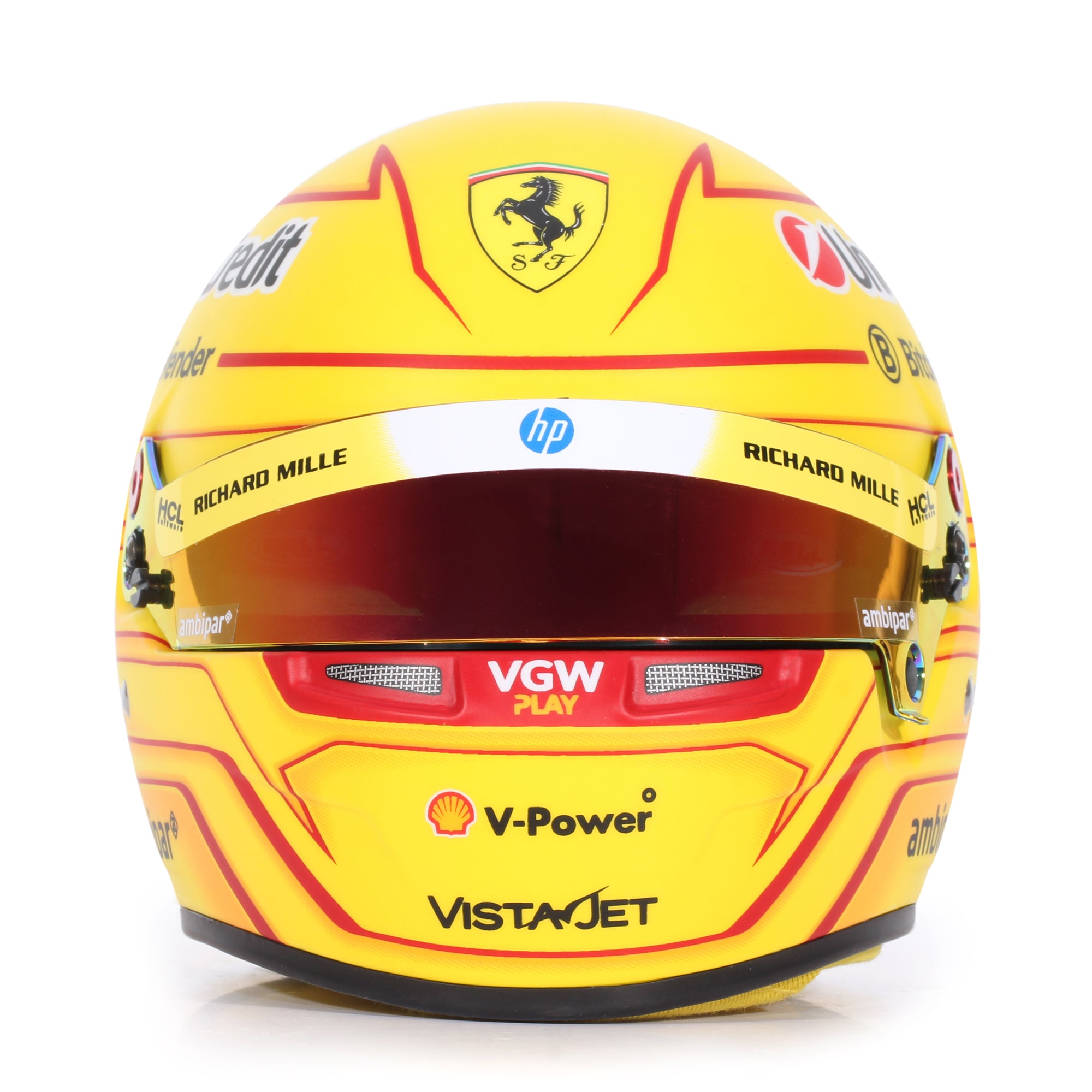 Now you can own a piece of the history forged during the career of Lewis Hamilton with this 1:2 scale Ferrari helmet, bolstering an impressive yellow and red design. However, this product has limited availability, so it is essential you act fast to secure this piece for your collection.