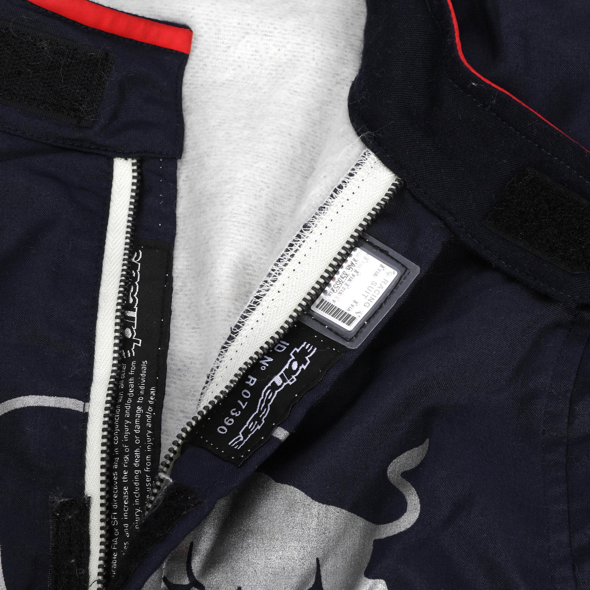Featuring the striking navy, silver, and red colour scheme of Toro Rosso’s 2019 livery, it also carries the branding of notable sponsors from the era, including Moose Craft Cider, a Thai brand owned by the Yoovidhya family, further linking the suit to Albon’s national identity. Its provenance is impeccable: the suit was originally purchased directly from the team and comes with a Certificate of Authenticity signed by Franz Tost, Toro Rosso’s Team Principal.
