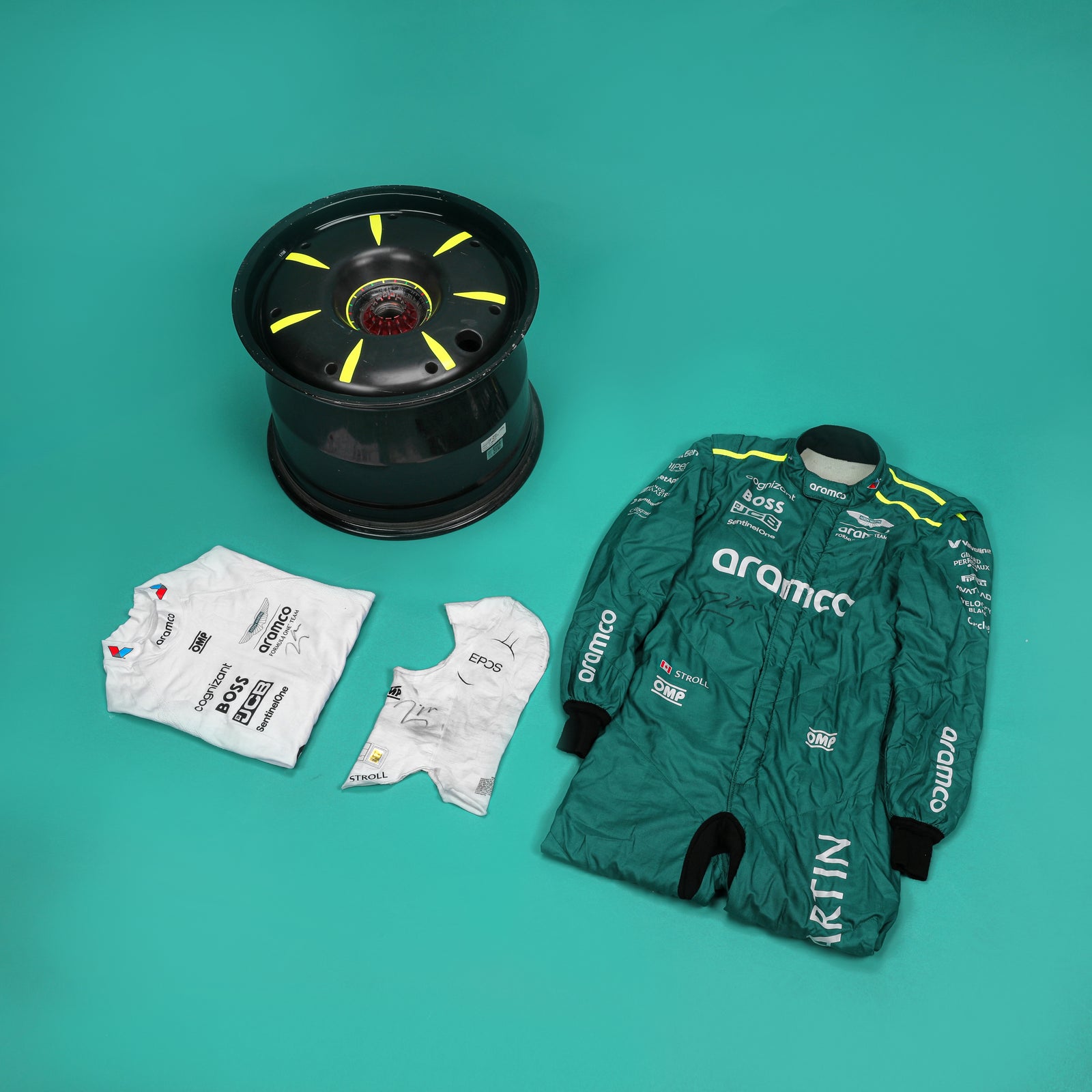 Own a remarkable piece of Formula 1® history with this exclusive Aston Martin Aramco F1® Team bundle, featuring racewear and a wheel rim used by Lance Stroll during the 2024 F1® season.