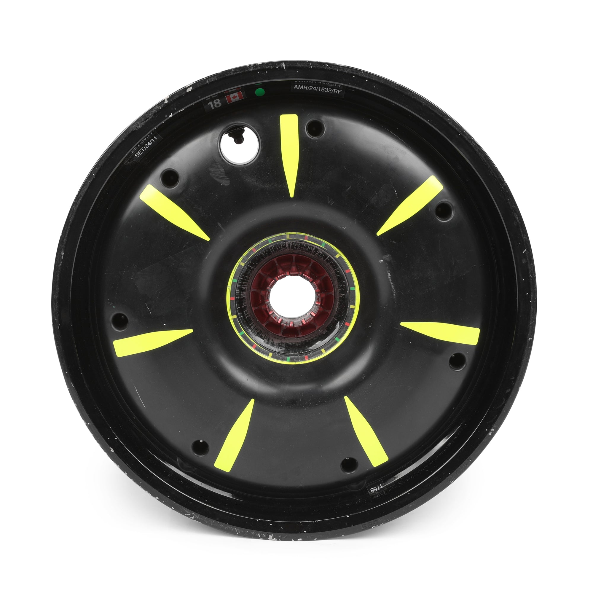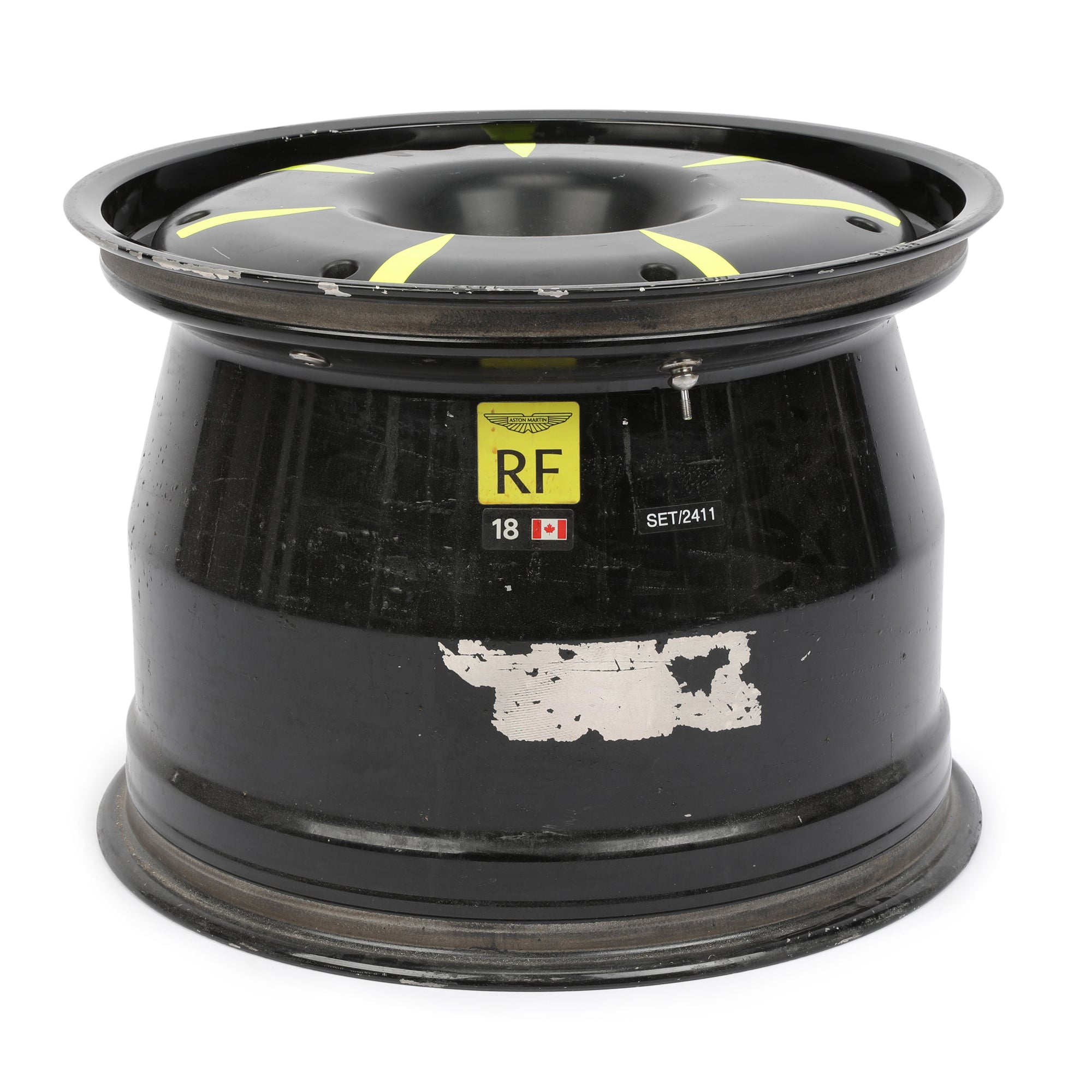Also included is a race-used wheel rim from Stroll’s Aston Martin F1® car. Displaying authentic signs of wear, it serves as a true testament to the car’s time on track—an unmistakable piece of Formula 1® engineering excellence.