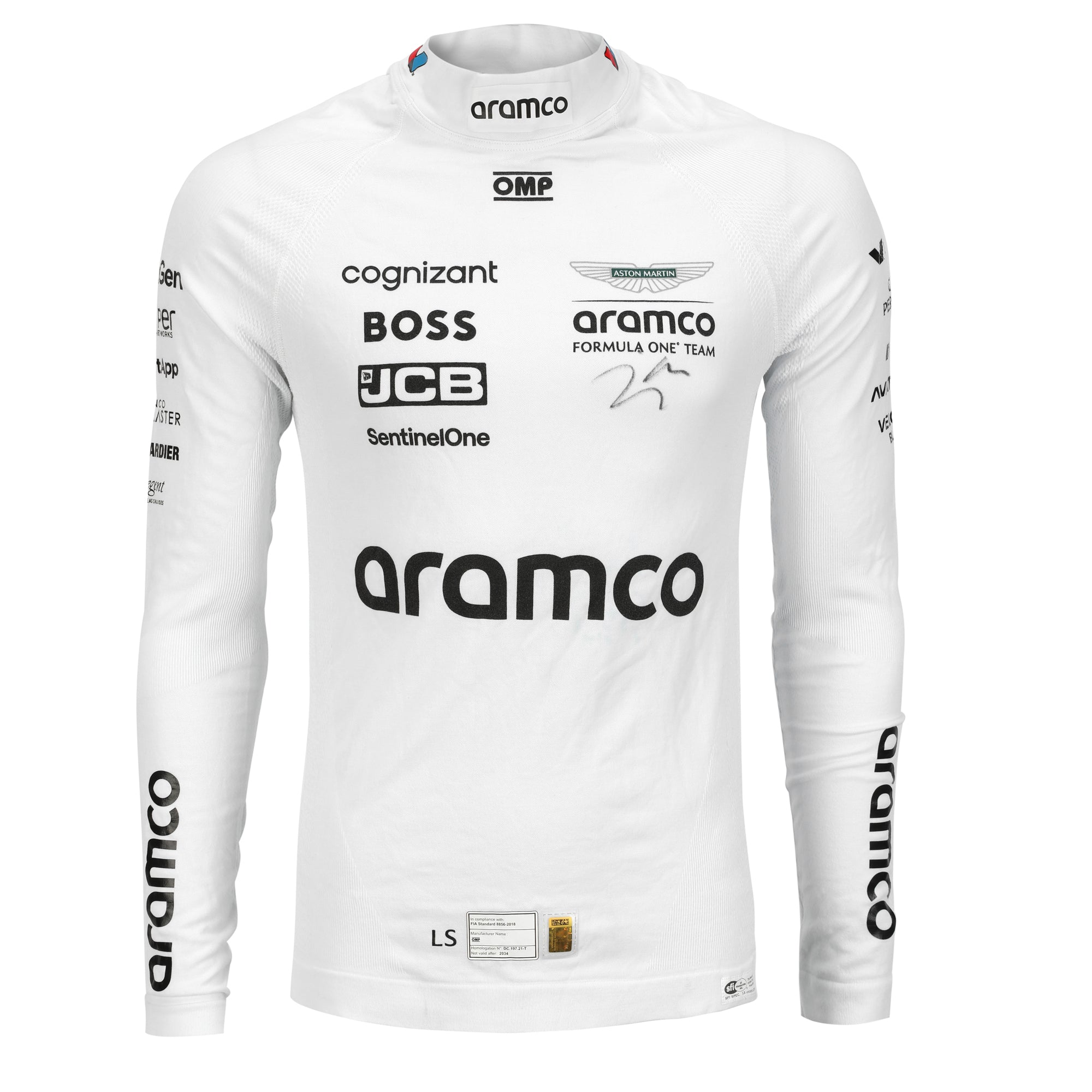 This exclusive bundle features Grand Prix–used racewear worn by Stroll during the 2024 F1® season, including a race suit, Nomex, and balaclava—each proudly adorned with Aston Martin Aramco F1® Team branding and sponsor logos. Every item carries the character of genuine track use, connecting you directly to the high-speed world of Formula 1®.
