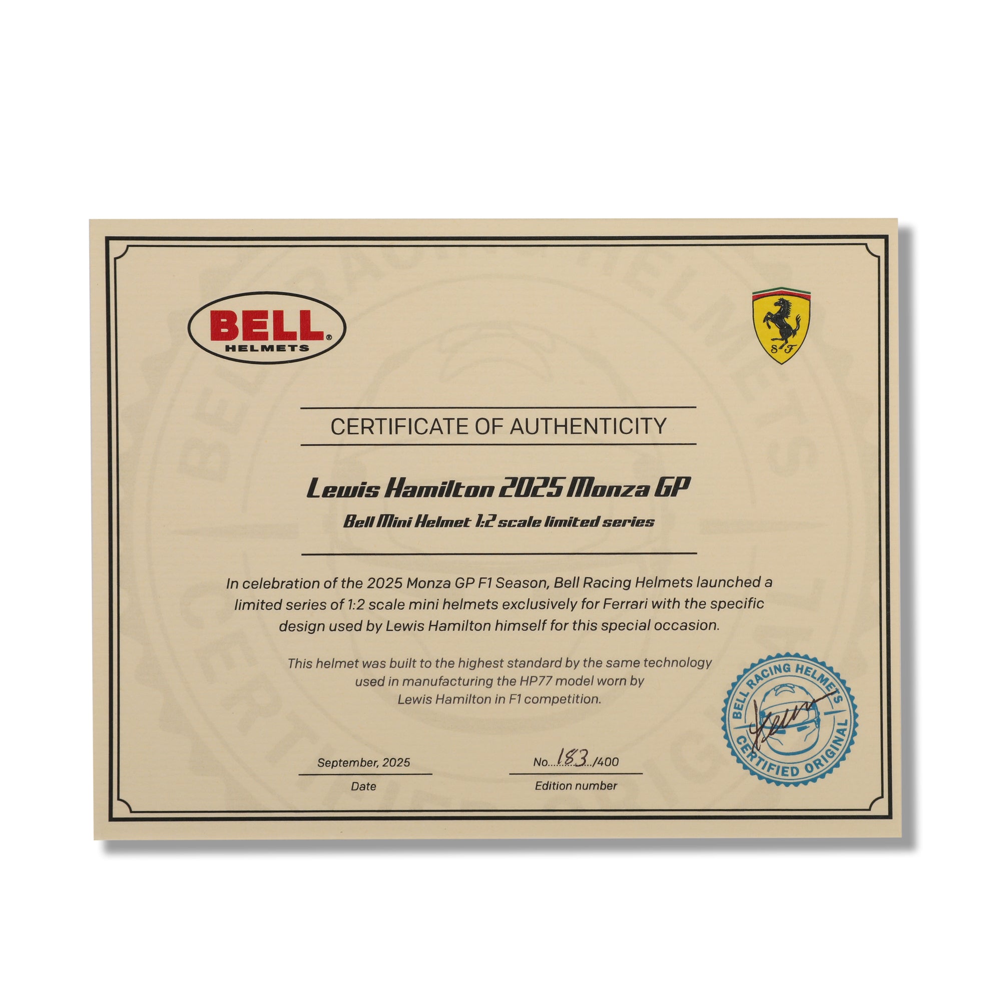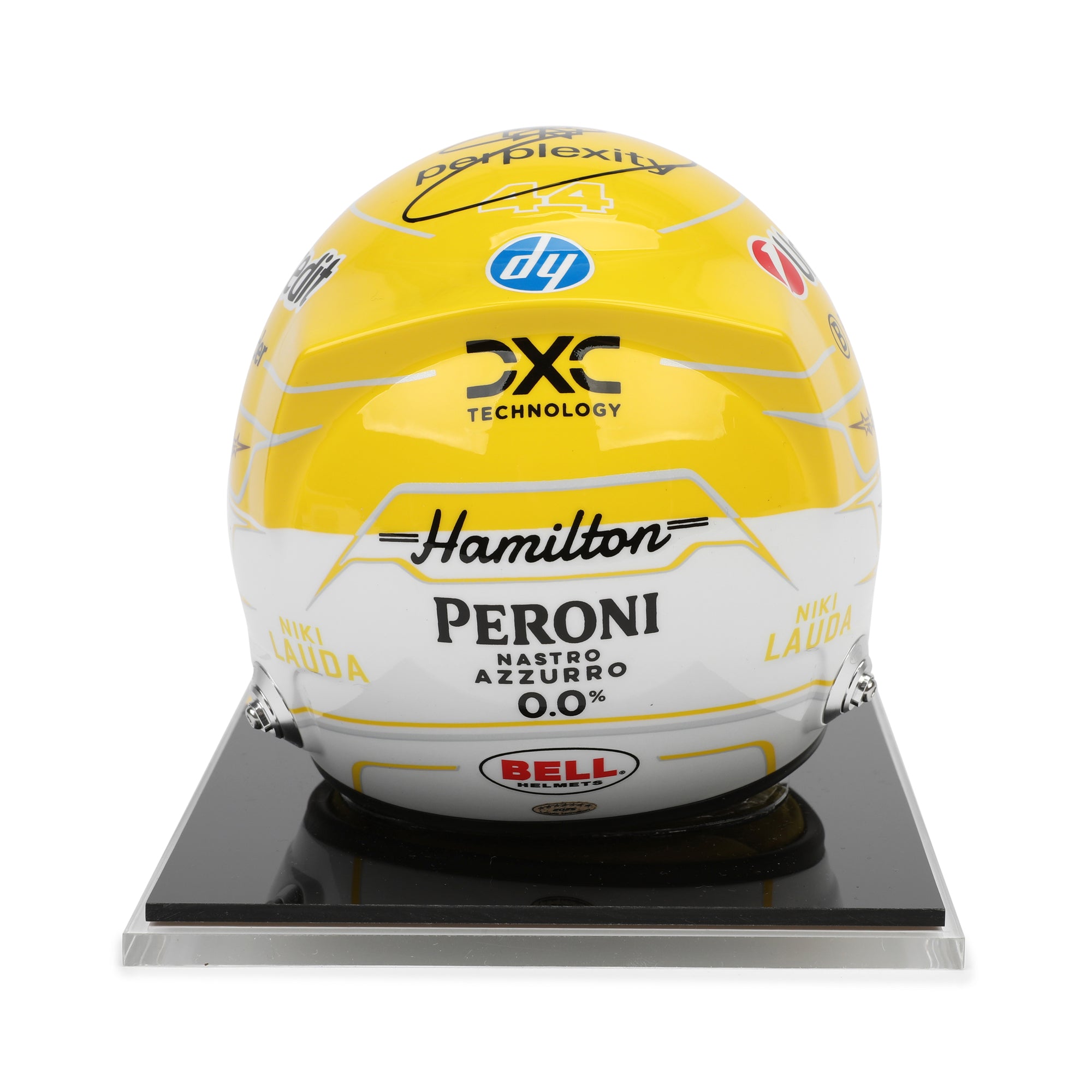 Featuring intricate graphics, official colourways, and accurate visor and helmet detailing, the mini helmet is a superb display piece for any Formula One collection. Hamilton’s autograph adds significant collectability, making this item a standout tribute to a legendary driver and the atmosphere of the Italian Grand Prix.
