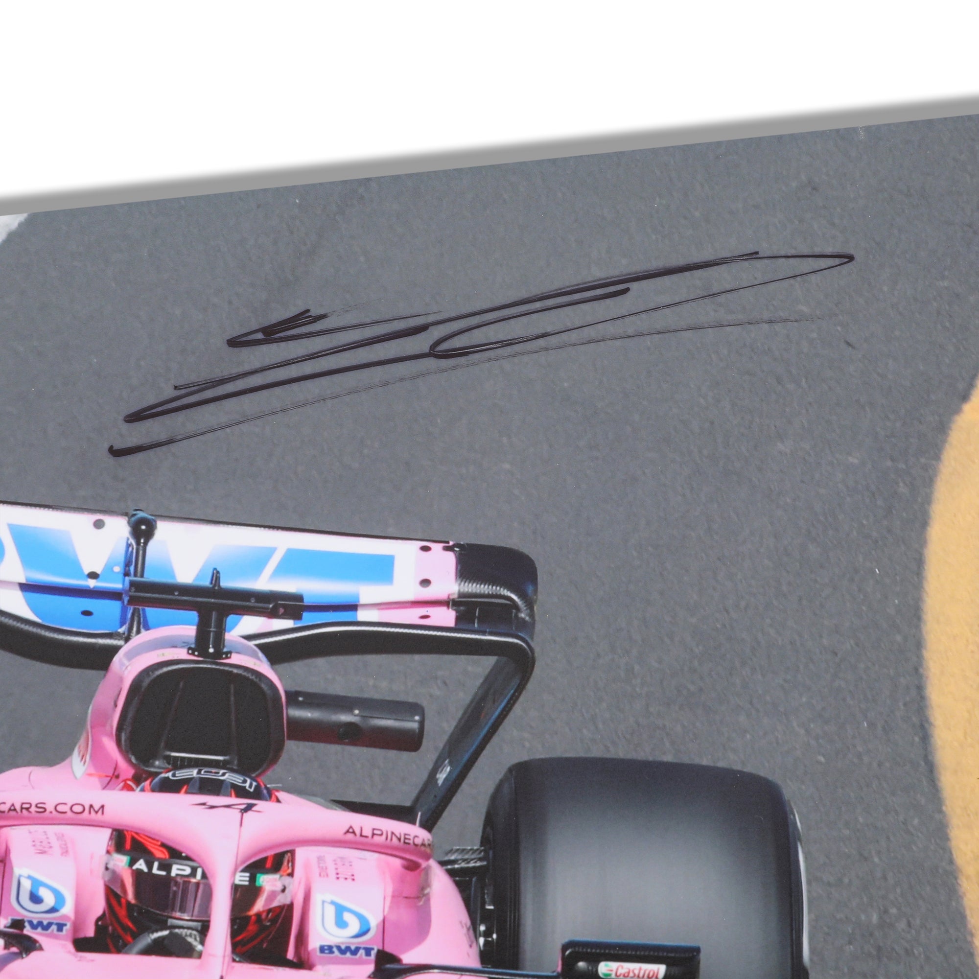 - Authentic signed Esteban Ocon poster, expertly verified and celebrating his impactful 2023 Formula 1 season.