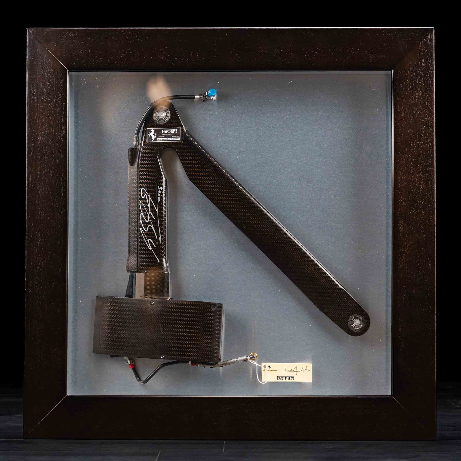 Framed and presented with Schumacher’s autograph, this wishbone transforms from a functional engineered part into a centrepiece of motorsport heritage. Its combination of technical authenticity and personal connection to the driver makes it an exceptional acquisition for collectors and fans alike.