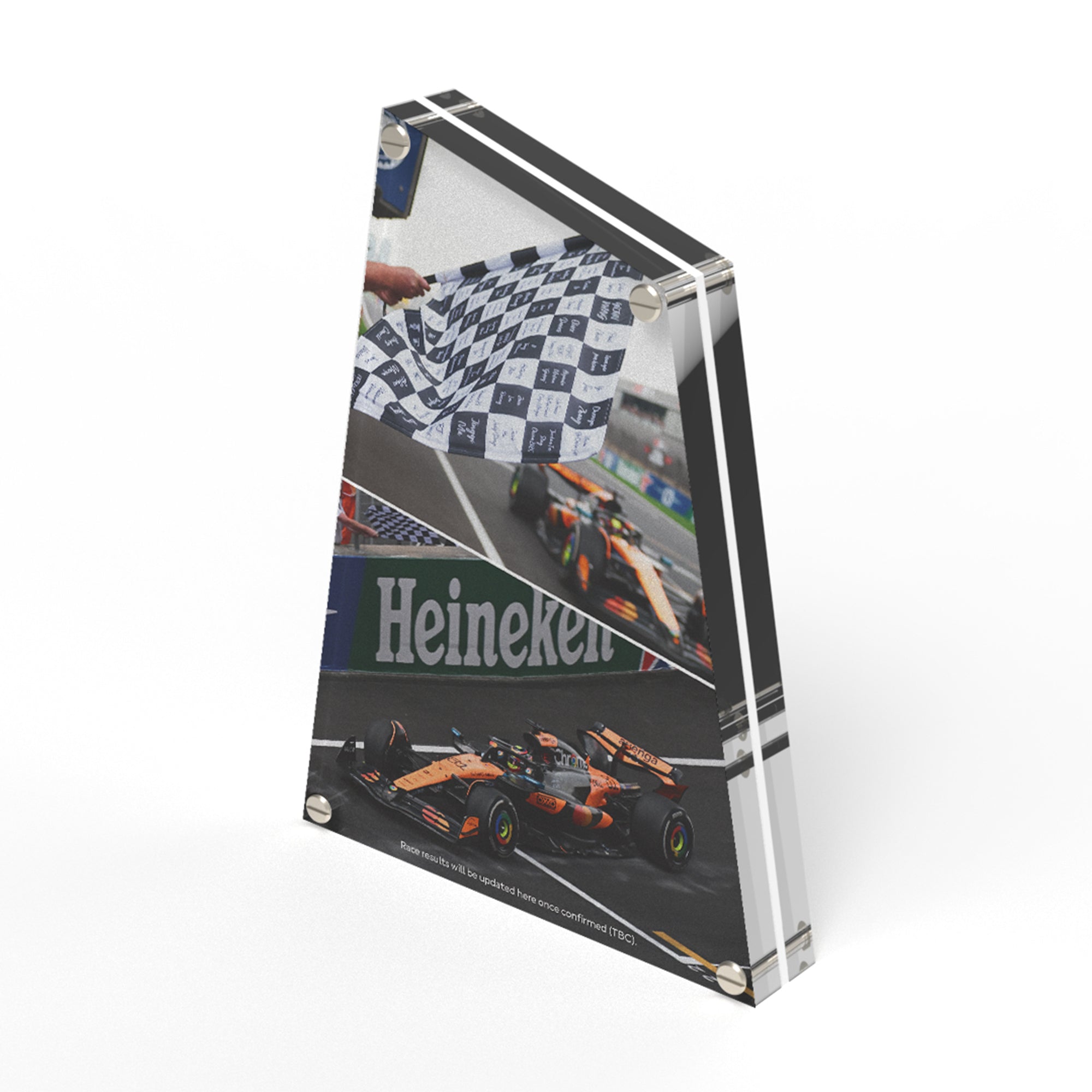It's back, with a brand-new acrylic display. Each piece features an authentic, personalised square from the chequered flag waved as the winner cro...