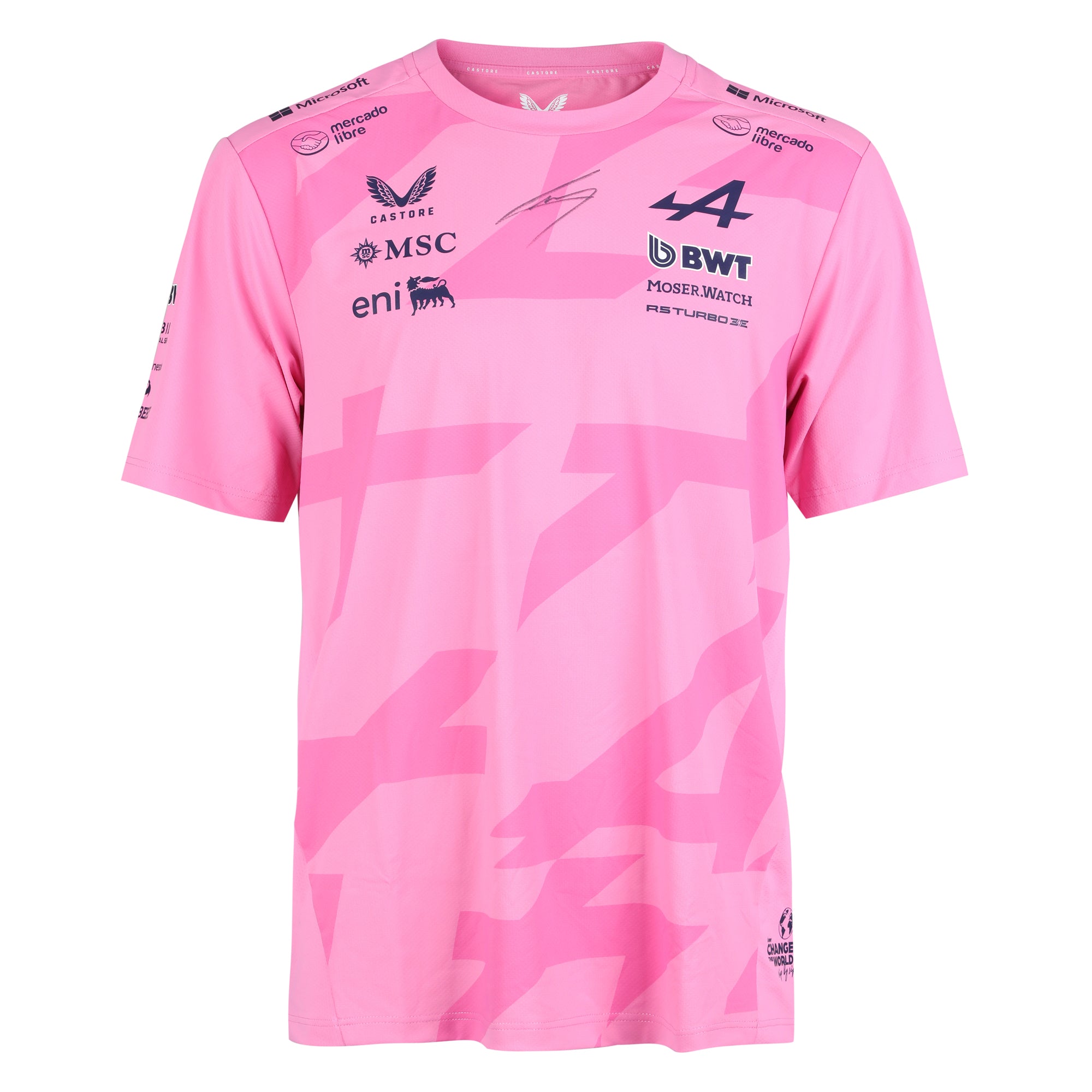 Become the owner of a BWT Alpine Formula One® Team T-shirt, signed by Pierre Gasly; a must-have for collectors and fans of the French racing driver.  Boasting a pink design, this official 2025 ...