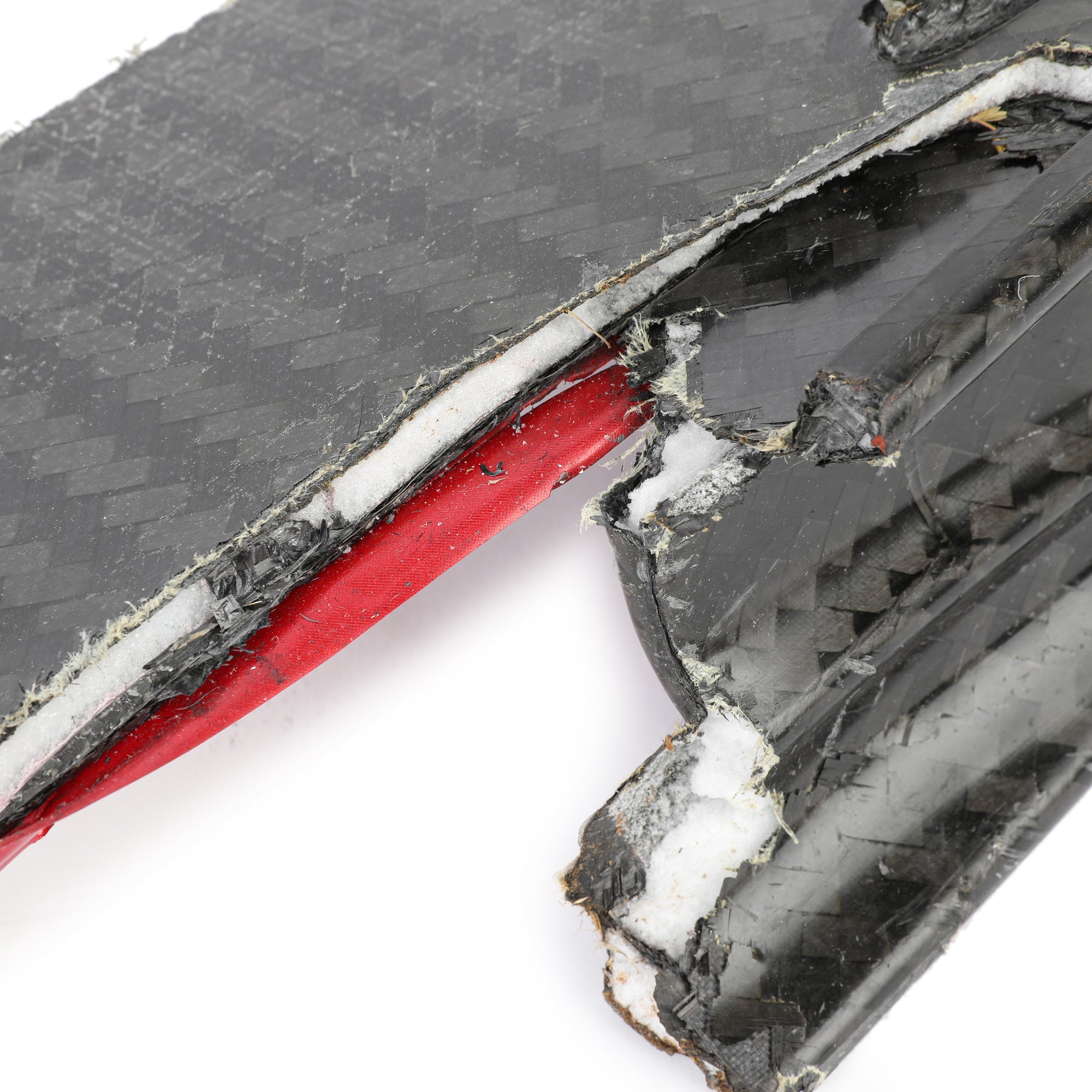• Carbon fibre component finished in Alfa Romeo’s red and white race colours.